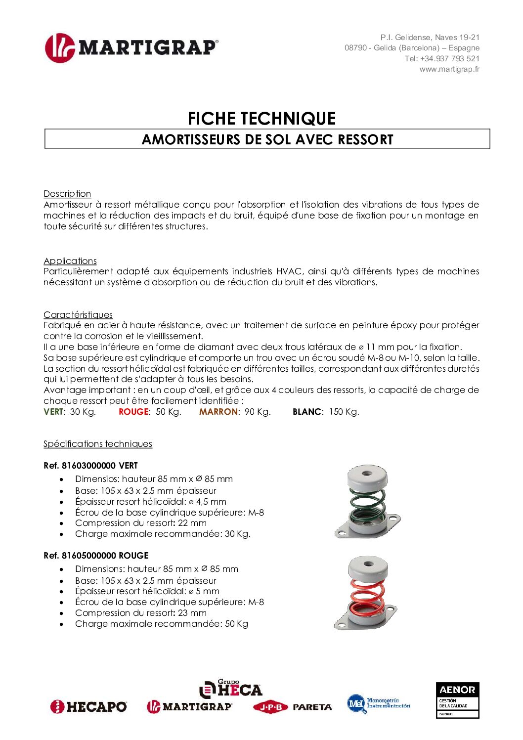 Fiche technique amortisseurs de sol avec ressort