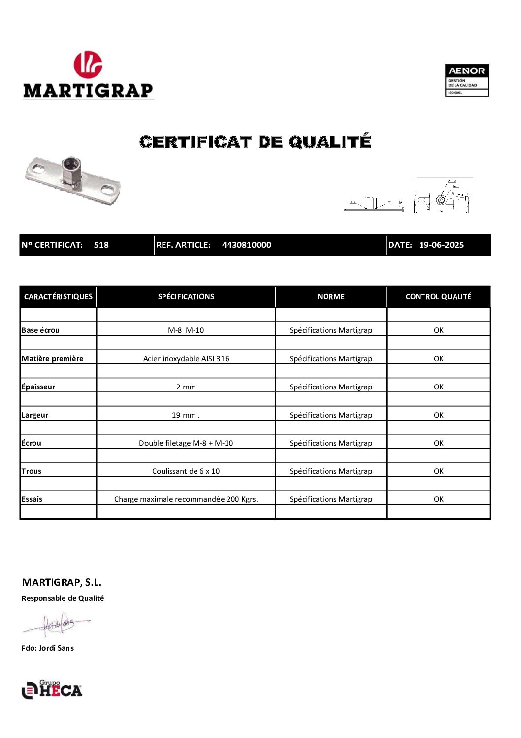 Fiche technique base écrou